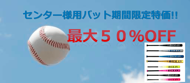 ニュース · 2018/03/13 センター様用バットが最大50%OFFセール実施中 球春到来! 今年もいよいよ待ちに待った野球のシーズンがやってきました。 そこで、去年実施させていただき好評だった「センター様用バットの特価セール」を3月23日から4月4日までの13日間で行います。 ぜひこの機会に、バットの追加、新調をご検討ください! セール対象商品など、詳細は以下のチラシを御覧ください。 2018年バッティングキャンペーン①.pdf PDFファイル 644.7 KB ダウンロード tagPlaceholderカテゴリ: 2018